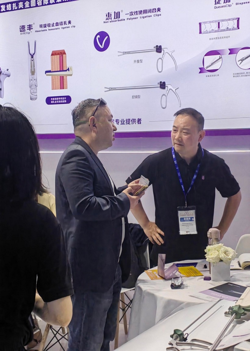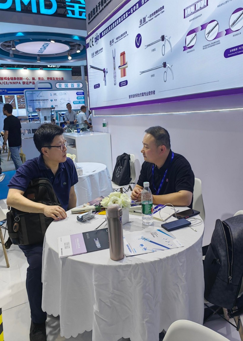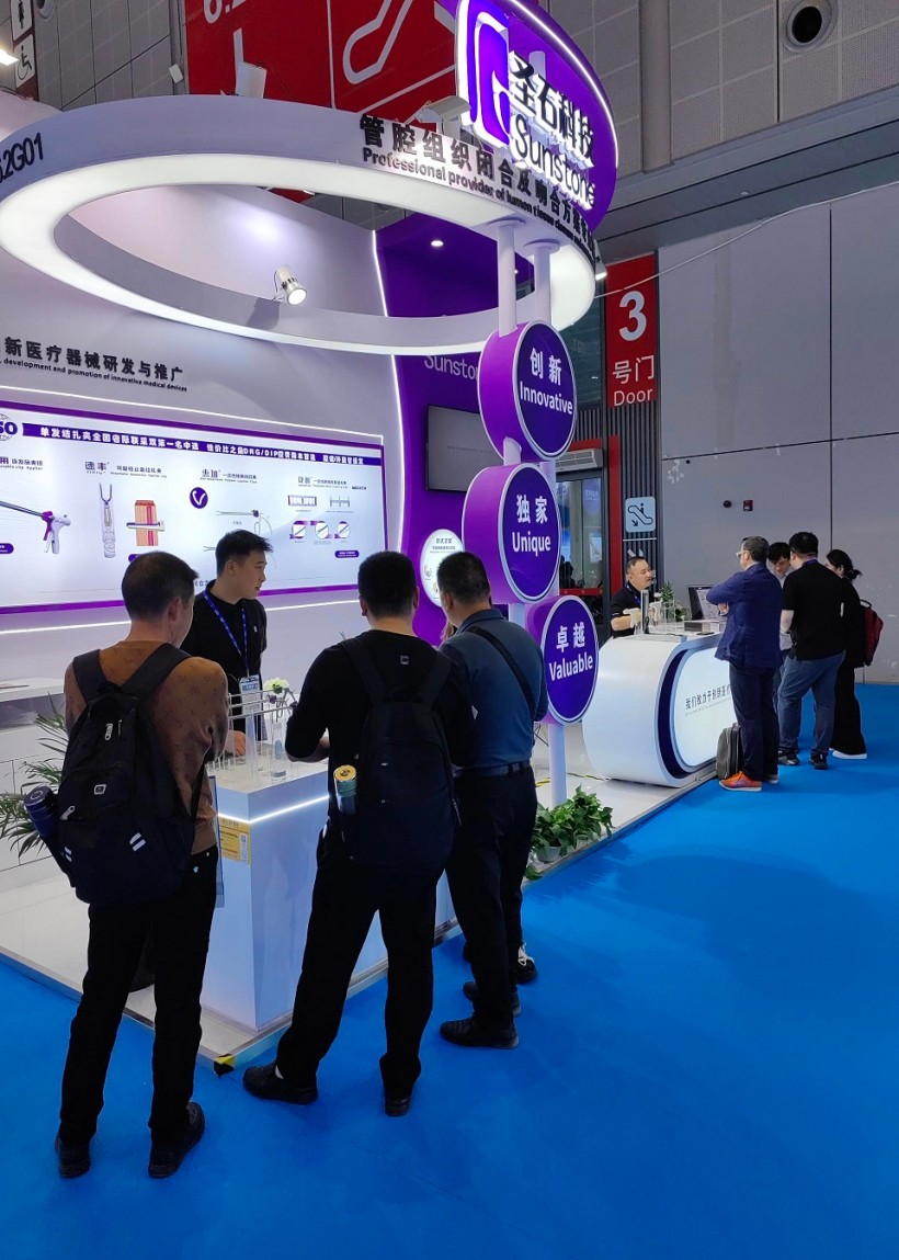 圣石同期展示的獨創產品又一次聚焦了眾人目光。全球首創捷加?一次性使用連發結扎夾及配套捷施?連發施夾鉗,其獨特的可重復使用連發鉗專利設計,以及“2-6枚的連發夾靈活選裝”專利技術不僅降低耗材使用成本,更通過流暢的操控性適配腔鏡復雜場景需求。圣石與浙大邵逸夫醫院聯合研制,可應用于腸道吻合與轉流的創新產品蔡式支架?“可崩解腸道吻合器”使此項全球創新術式配套產品具有吻合時間短、無永久殘留異物、不破壞吻合口粘膜下血管,并能預防吻合口漏、可避免人工肛門及二次手術、治療周期縮短、減少患者生理心理創傷等多項臨床優勢。